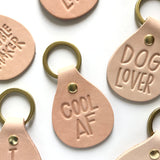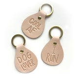 What does you keychain say about you! These expressive, natural vegetable tanned leather keychain are sure to add a little attitude to you keys. Lots of witty expressions to choose from, with many more on the way. Pick one up that expresses you!