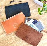 These pouches are great for on the go! You can fill them with all you cash, cards and receipts during your day of shopping and running errands. The tough full grain leather and brass zipper will allow you you have this beautiful pouch for many years to come!