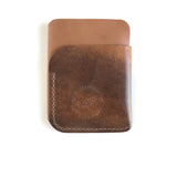 The Bushwich cardholder is a little powerhouse, and is the perfect addition to your everyday carry. It has a folded, full card slot in the middle and a two short wrap around pockets on the outsides that fit your most used cards. This minimalist cardholder holds up to 7-8 cards and cash.